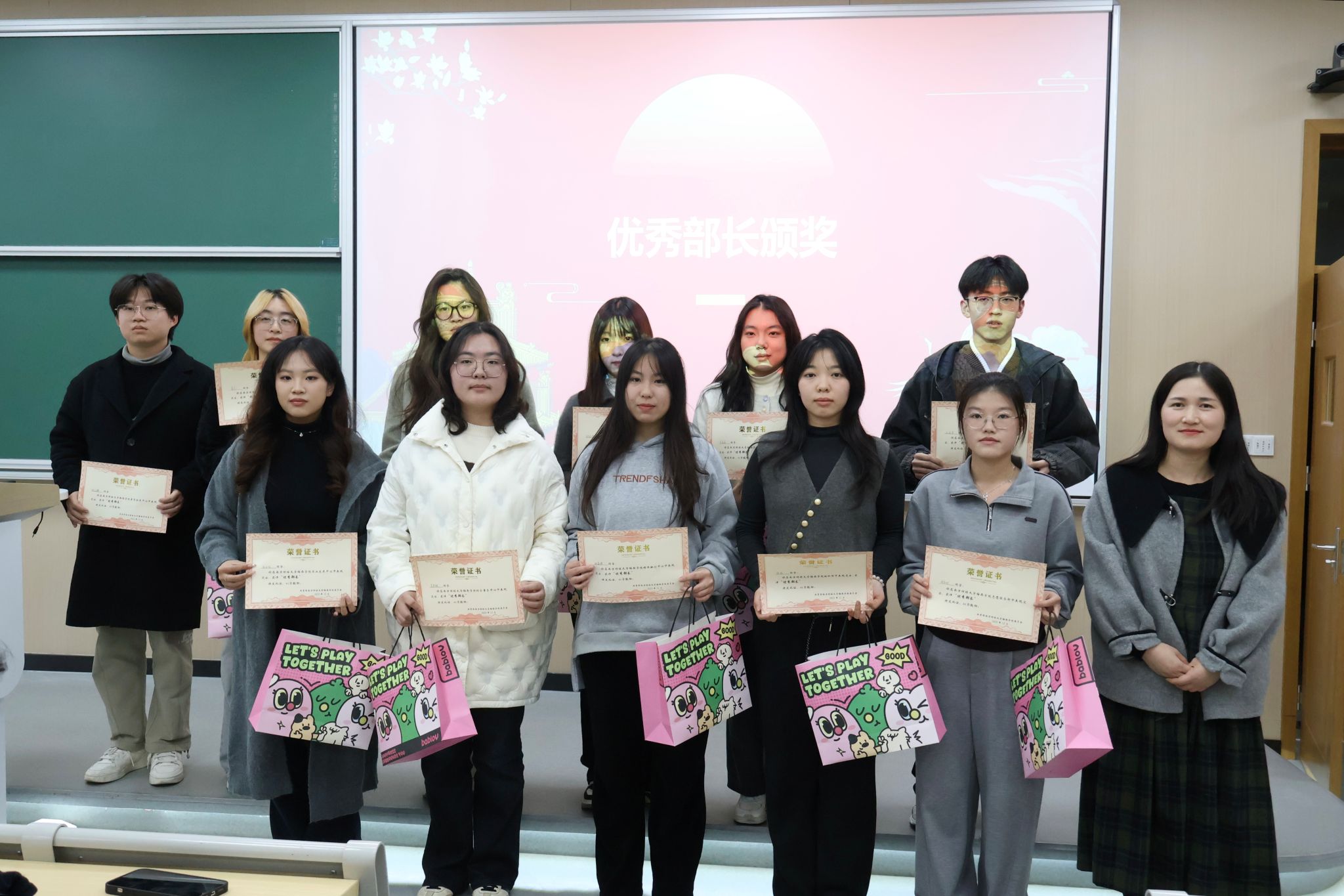 本次述职大会各部门半学期的“成绩单”进一步凝聚了“以学生需求为导向”的服务共识,一些实打实的行动,让优秀部门及部长的评选更具说服力。综合活动创新、服务效能、宣传影响力等各方面,评选出优秀部门和优秀部长。优秀部门:综合事务中心、媒体融创中心、素质拓展中心、宣传部、志愿服务部;优秀部长:综合事务中心吴昱璇,心理健康中心肖逸茹,国际交流中心沈悦,媒体融创中心施嘉琪,素质拓展中心袁蕊、张钰麟,学业发展中心赵天怡,组织部陈悦,宣传部段安琪,青年发展部刘佳洋,志愿服务部周芳羽。祁聪颖老师为优秀部门和优秀部长颁发证书。