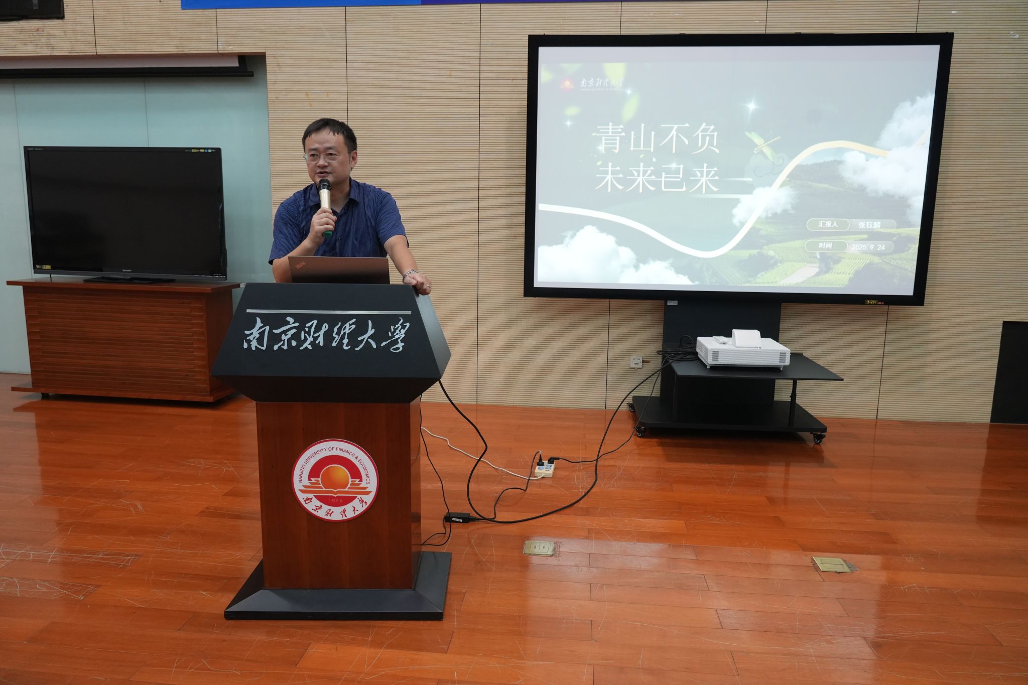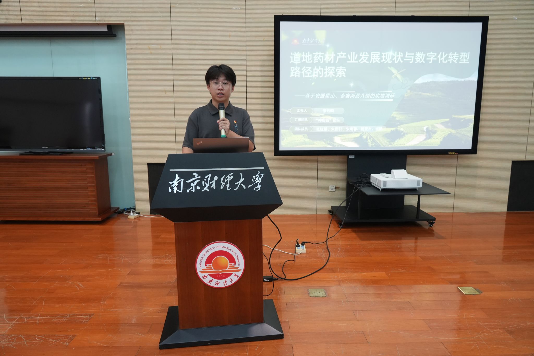 我院暑期社会实践团队优秀代表张钰麟同学作实践成果分享报告。他以“青山不负,未来已来”为主题介绍了团队实践活动的项目背景、调研历程、实践成果、团队介绍以及未来规划,向我院学子深入介绍了“道地”背后的生态与科技内涵和团队“数字化助农”的成功经验,展示了扎根实践沉淀的重要性。