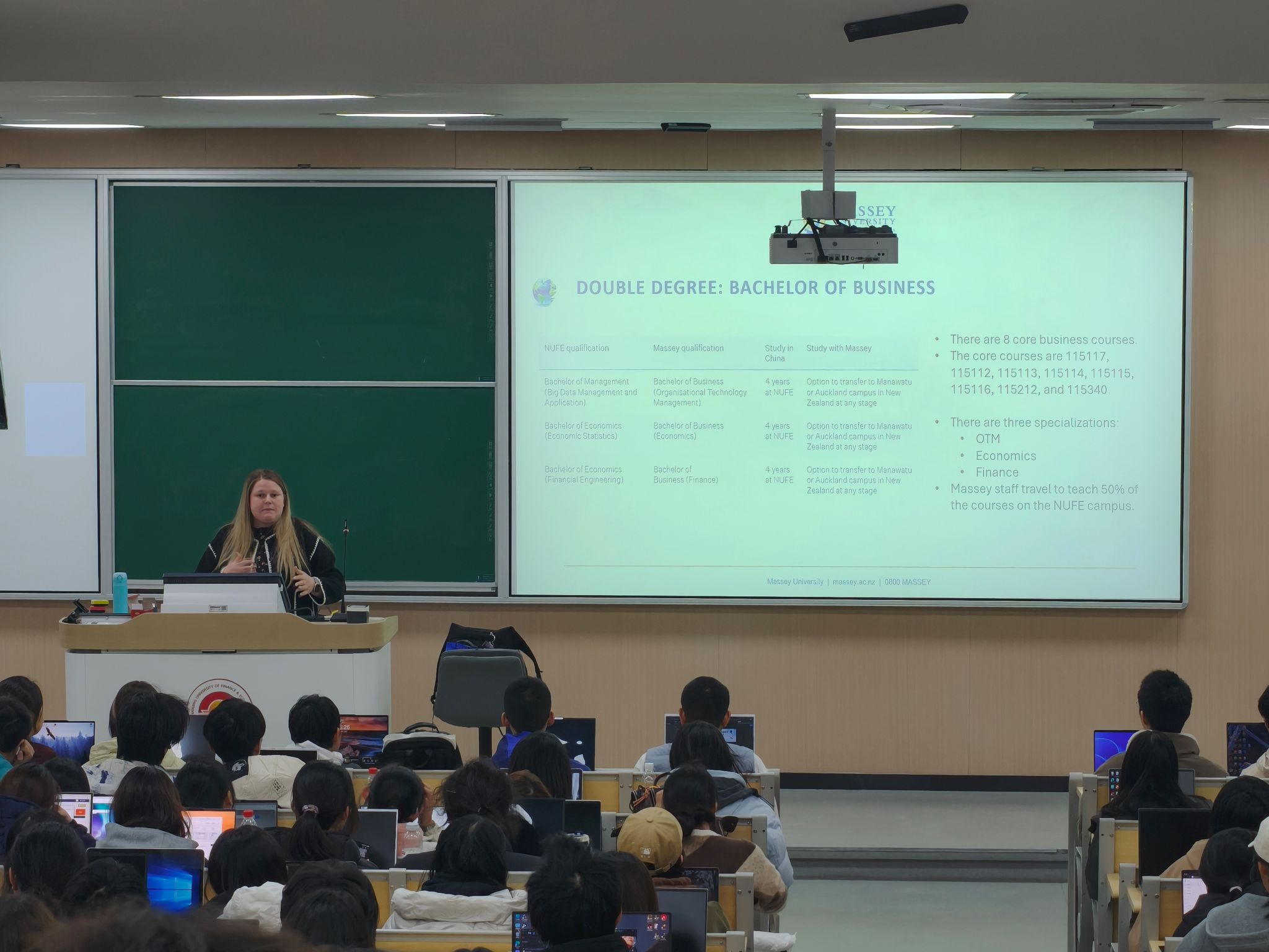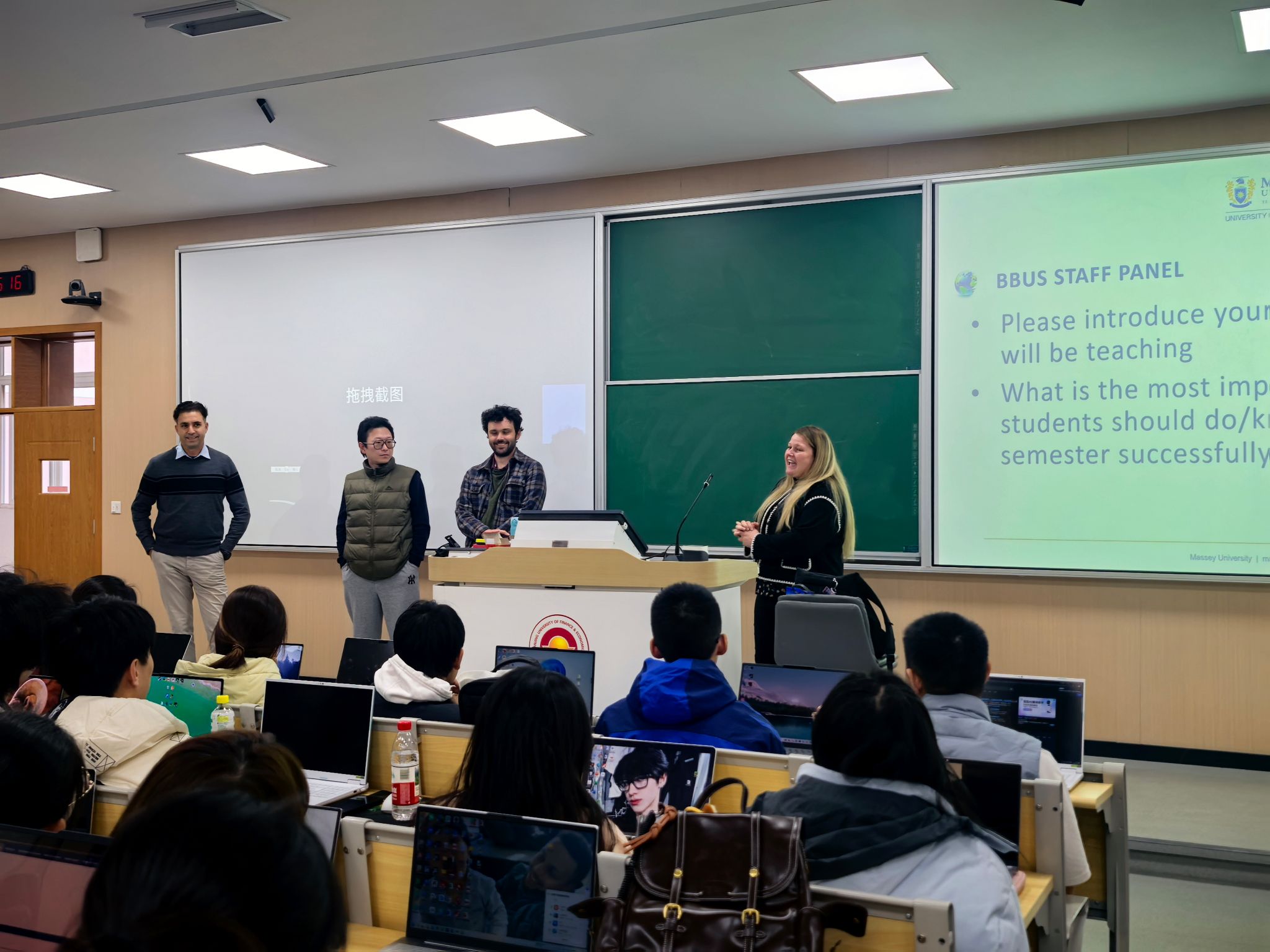 为帮助2025级学生全面了解梅西大学的学术体系与学习模式、提前适应全英文学习环境,11月26日下午,我院在博观楼JB202教室举行梅西课程课前教育(Academic Orientation)活动。学院副院长(主持工作)陆颖健教授,梅西大学教师代表Jessica Crewe-Brown、Shafiq Alam、Leon Lin、Flynn Grace,2022级学生代表以及2025级全体学生参加活动。活动由梅西学院副院长马健主持。