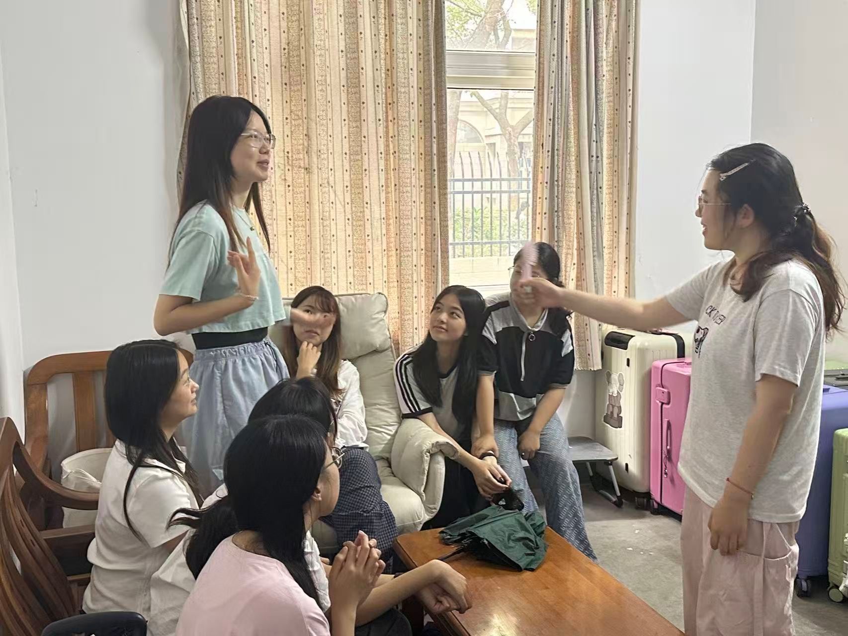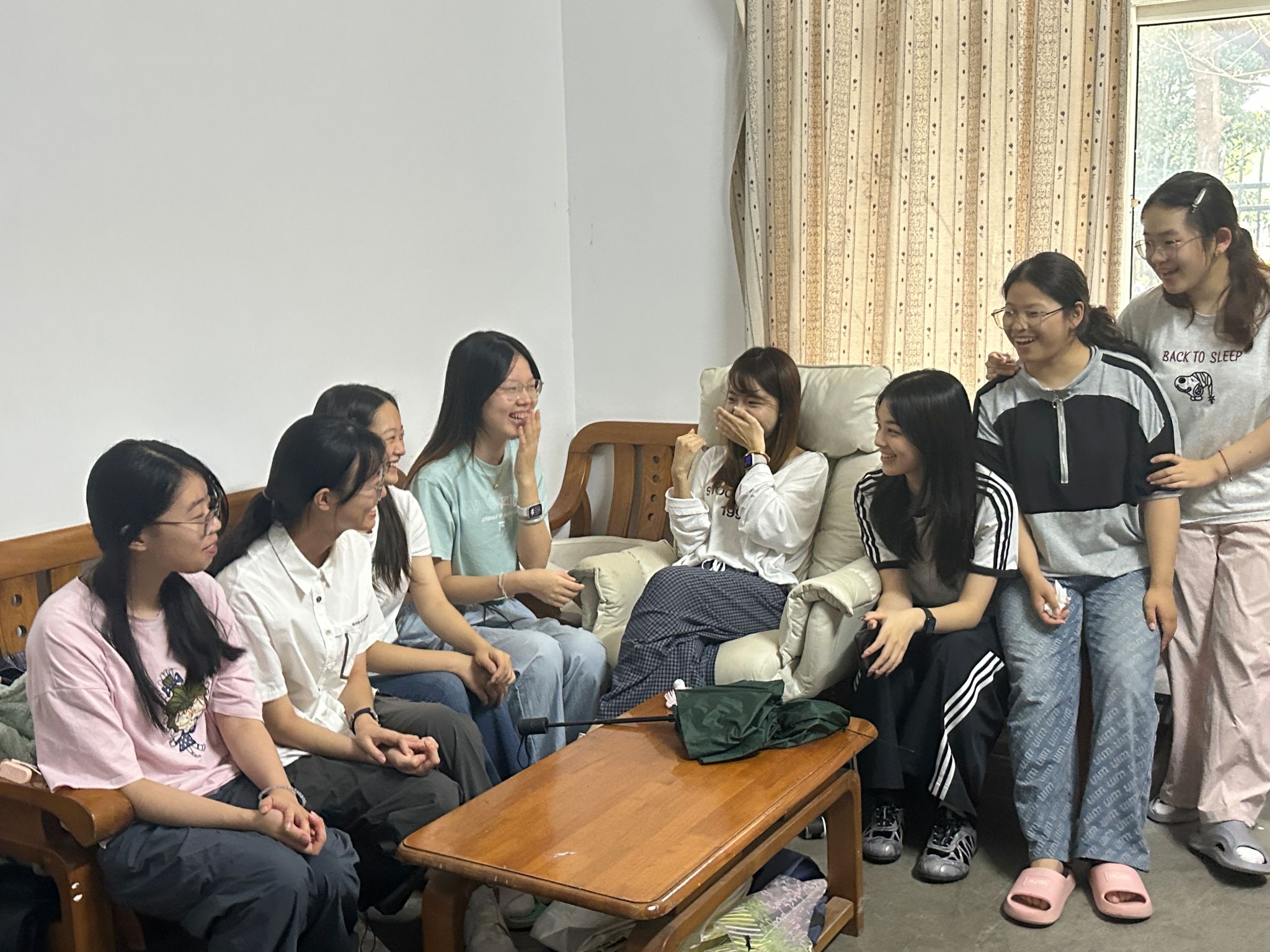 活动现场,小“梅”子以宿舍为单位组队,或现场随机匹配,体验“新室友相遇”,在90分钟的沉浸式体验中收获满满。游戏进行中,各桌不时传来欢声笑语——有的宿舍为共同制定“熄灯时间公约”热烈讨论,有的在“说出室友优点”环节真情告白,志愿者与心理委员全程引导,让互动更显温馨。