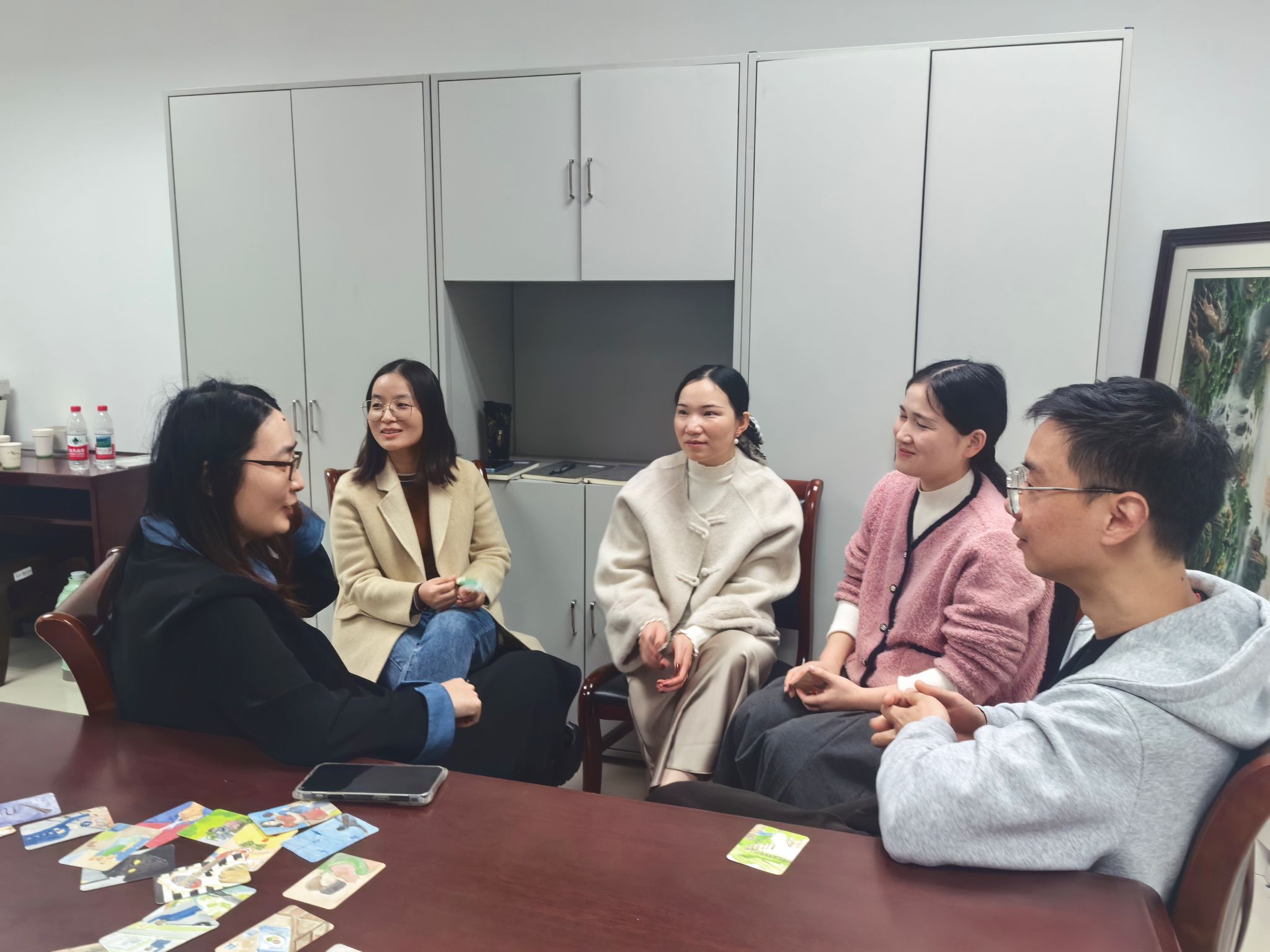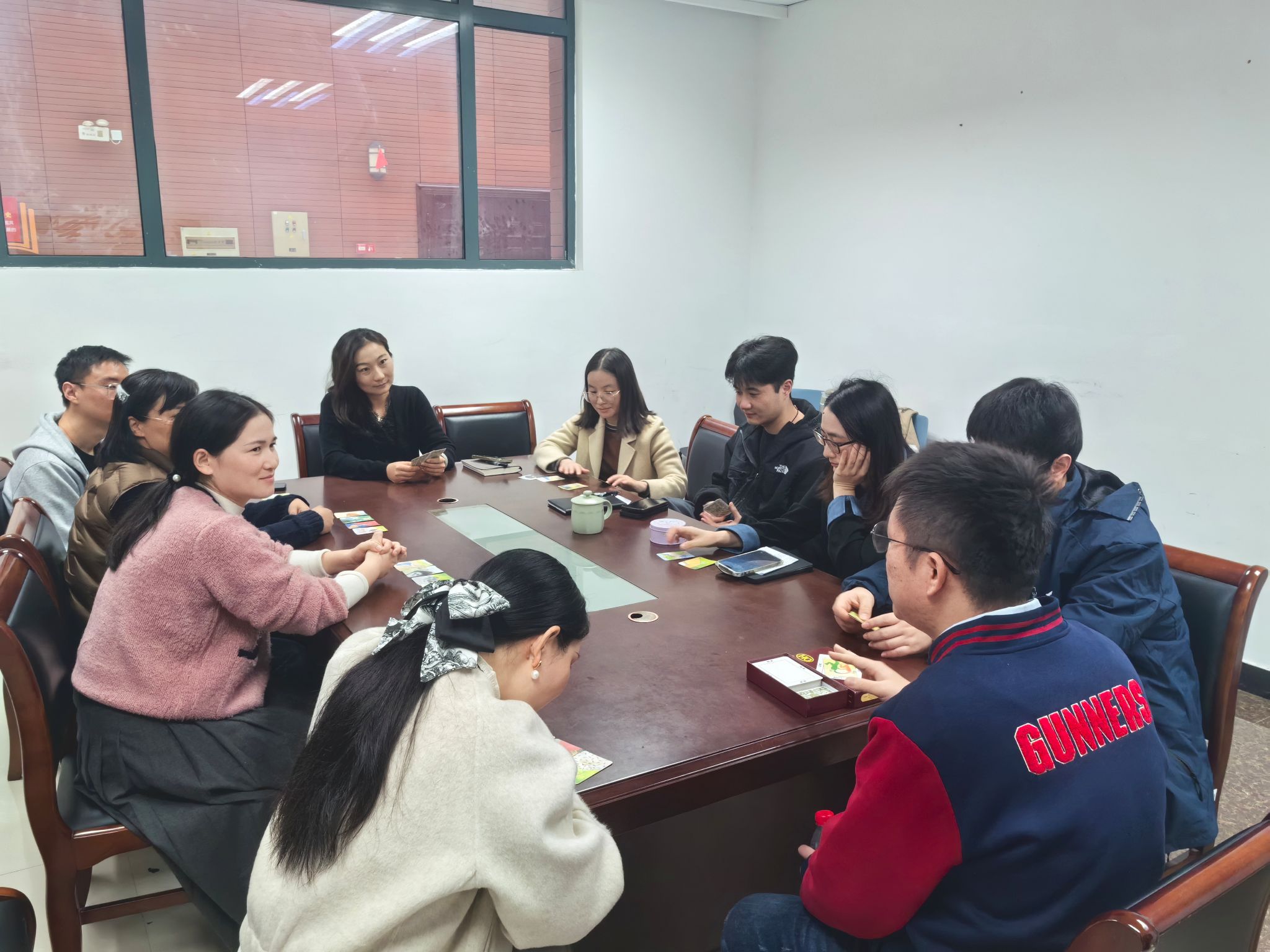 培训在轻松愉悦的氛围中展开。崔伟老师运用“欧卡牌”(OH Cards)这一心理学探索工具,引导辅导员老师们开启了一场深入的心灵探索之旅。环节设计精巧,每位老师依次抽取四张牌卡,分别映射“当下状态”“压力来源”“未来愿景”以及一张寓意“解决之道”的盲抽牌。在崔老师的专业引导下,辅导员老师们真诚分享解读,彼此倾听、共鸣与赋能。方寸卡牌间,不仅是情绪的释放与压力的表达,更是在团队支持下对自我状态的清晰觉察与对问题解决路径的积极探寻。