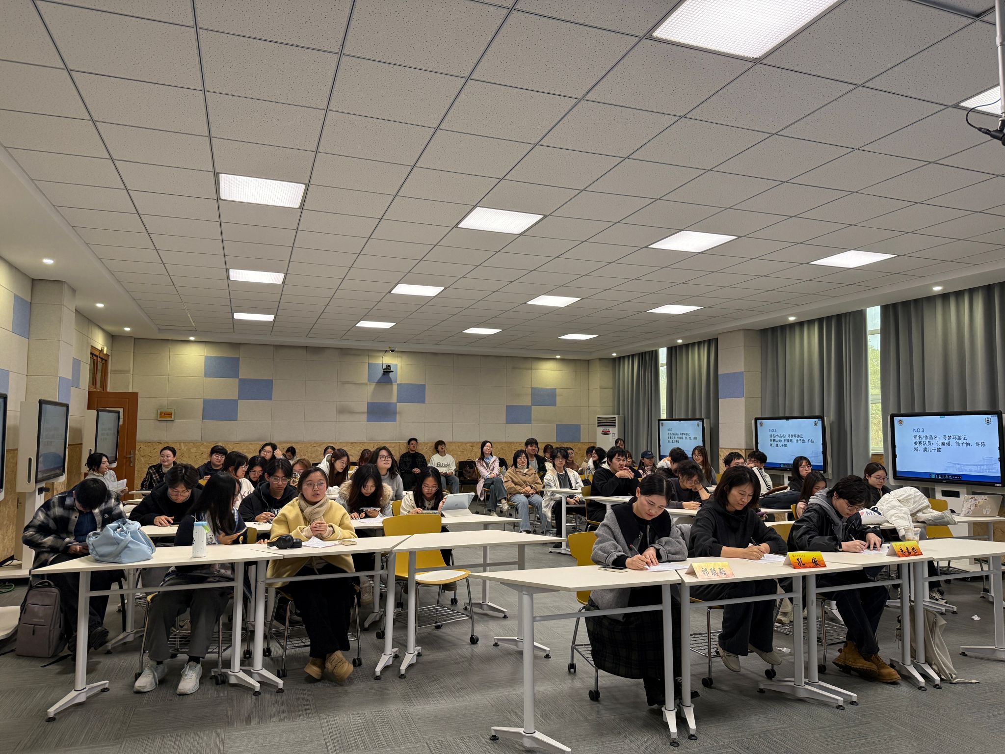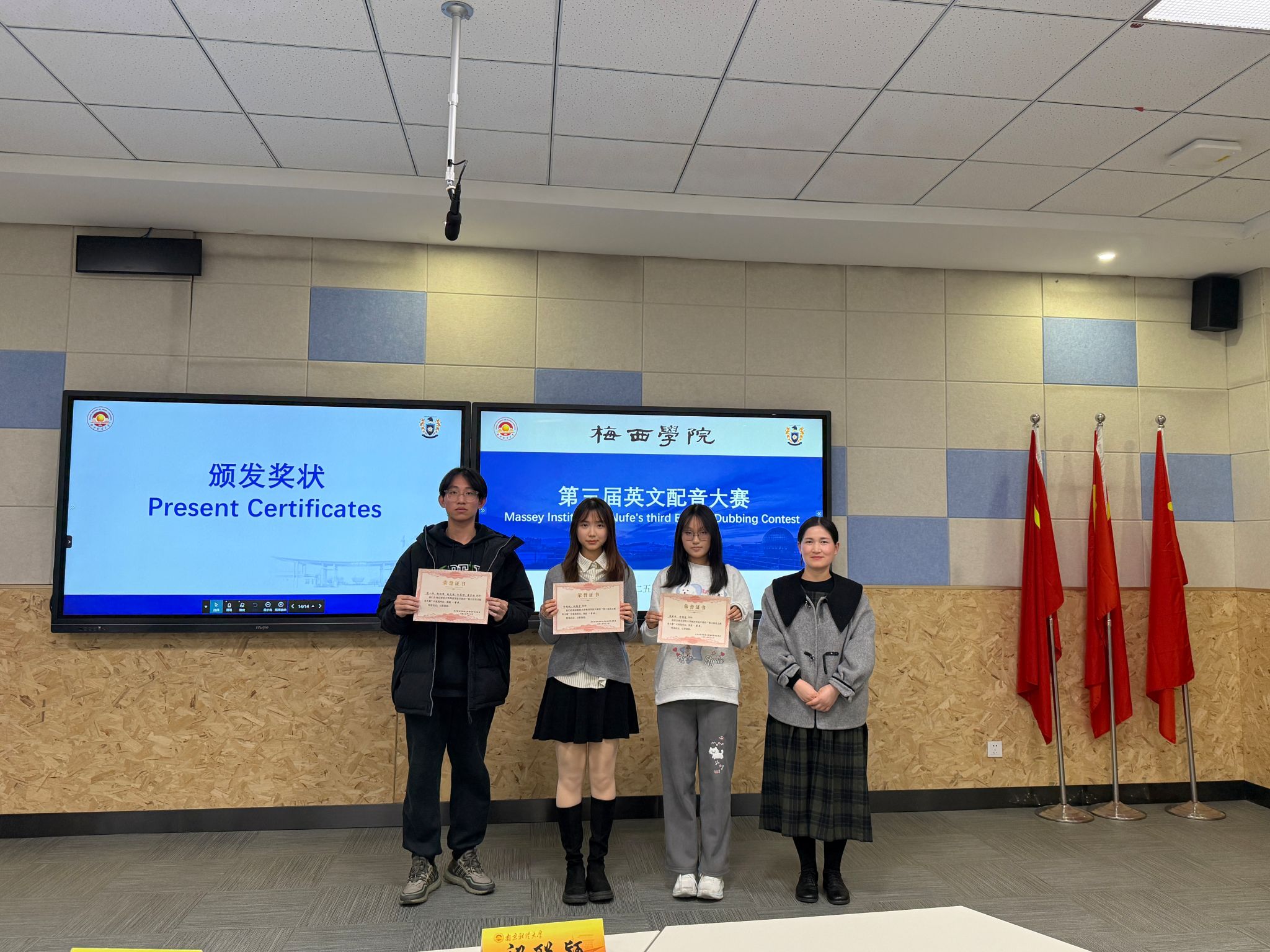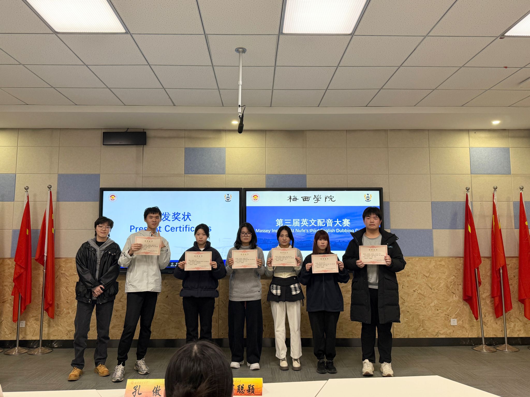 为深化英语教学实践,激发学子跨文化表达热情,我院第三届英文配音大赛于12月10日下午在博文楼101智慧教室精彩启幕。我院副院长孔傲、团委书记祁聪颖、学生会轮值主席朱嘉怡担任大赛评委。