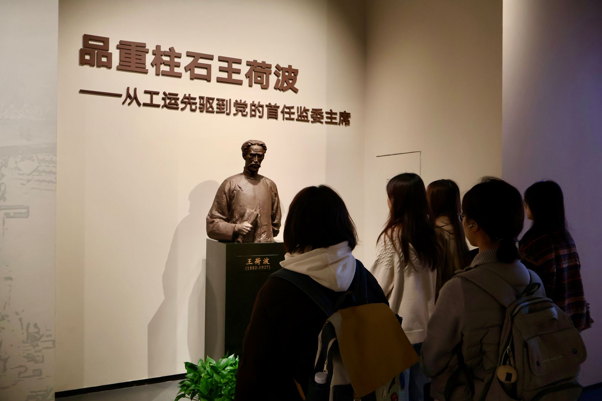在两浦产业工人主题展厅,早期工人在艰苦环境中觉醒、团结、抗争的历史,让同学们感受到工人阶级的力量与尊严;在两浦地区党组织展区,隐蔽战线的斗争故事展现了共产党人“坚守初心、不畏强敌”的政治本色;在“品重柱石”王荷波专题展区,大家深入学习这位党的纪律检查事业奠基人的事迹,被他严于律己、廉洁奉公、对党忠诚的高尚品格深深打动。他“教育子女不要走与我相反的道路”的临终遗言,更是引发大家对廉洁修身、传承优良家风的思考。在江北抗日斗争展区,军民共同抗战的英勇事迹,生动诠释了爱国奉献、不畏牺牲的家国情怀。通过主题展区的连贯参观,全体人员接受了一次系统而深刻的红色精神洗礼与廉洁文化教育。