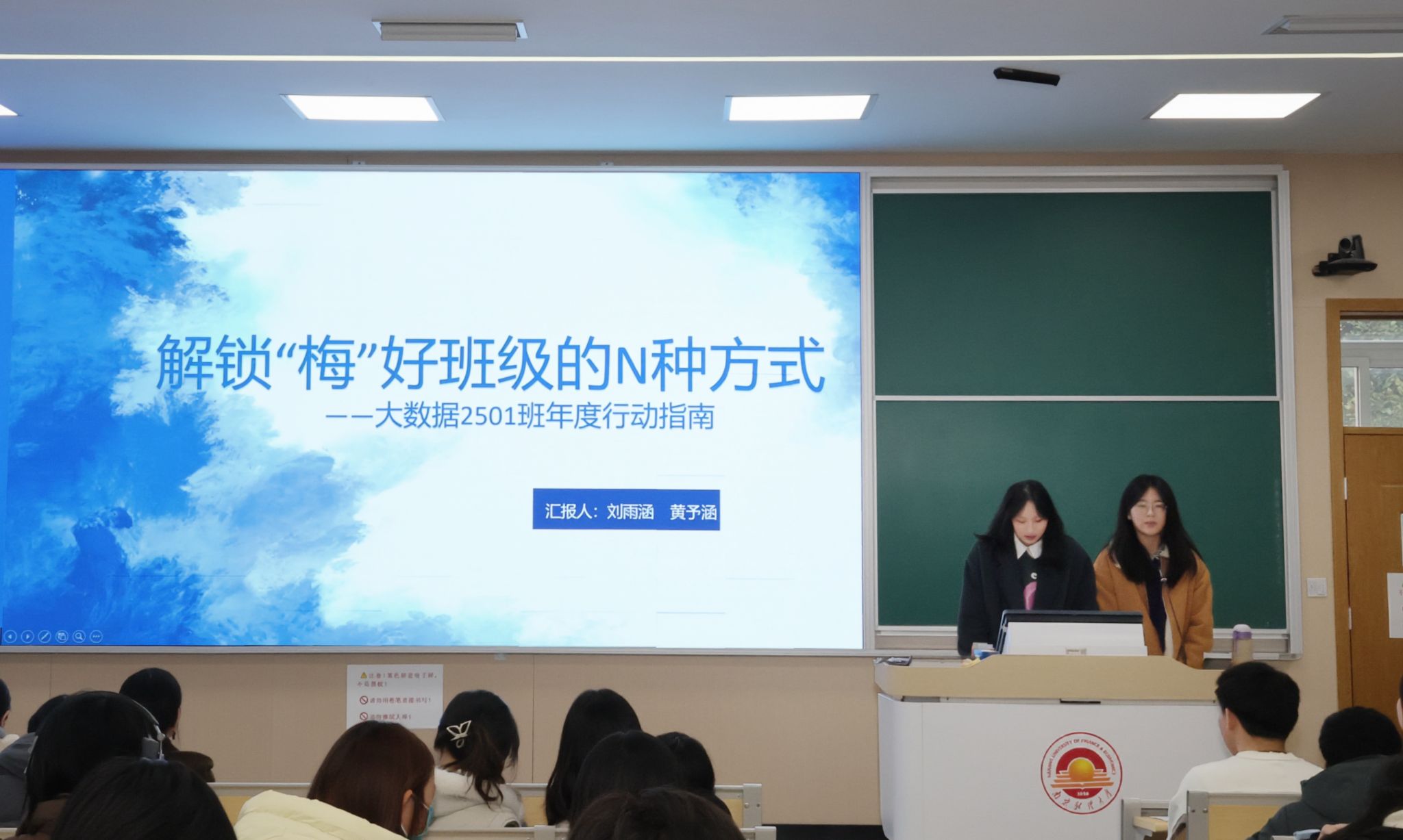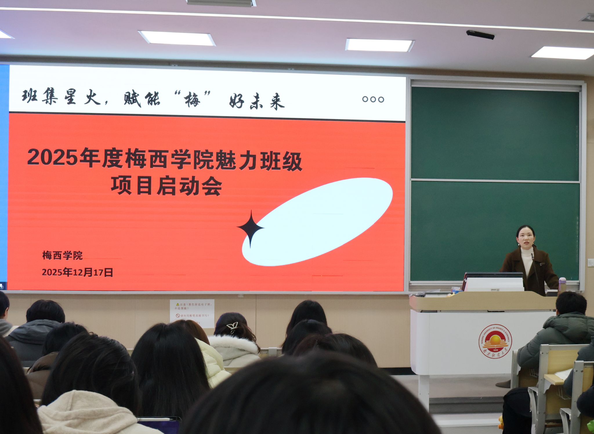 为加强新生班级文化建设和诚信安全教育,增强班级凝聚力与向心力,展现梅西学子积极向上的精神风貌,12月17日下午,我院在博观楼201智慧教室举办了2025年度魅力班级项目启动会暨诚信教育动员会。本次项目启动会评委由院团委书记祁聪颖、新生辅导员杨成凤、院学生会轮值主席朱嘉怡担任。