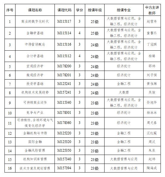 经推荐选拔,现将2025-2026学年第二学期梅西学院新方课程中方主讲教师入选结果公示如下: