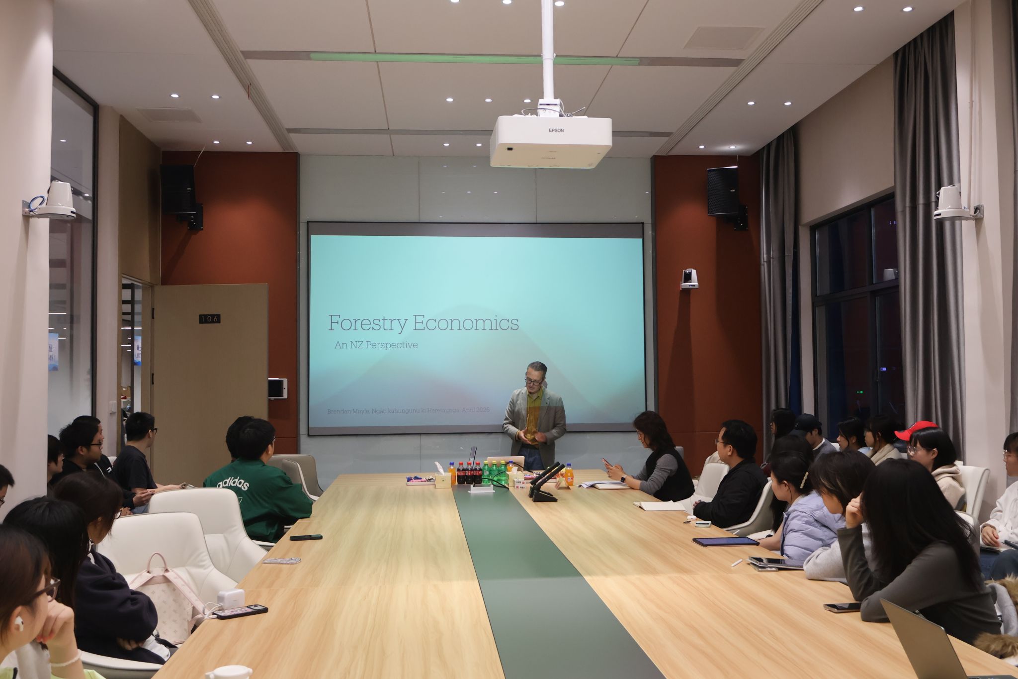 讲座中,Brendan Moyle老师以“林业是一项投资活动”为核心理念,系统阐释了林业经济的底层逻辑:树木作为可增值资产,其价值增长与林木生长周期紧密相关;但与此同时,林业也面临着未来收益难以预测、自然灾害与病虫害损失等风险,这使得林业管理兼具复杂性与挑战性。结合新西兰林业发展的丰富实践,Brendan Moyle老师从商业、气候、文化、生态保护等多维度,深度剖析了林业的多元价值。他重点介绍了新西兰林业的三大鲜明特征:一是毛利人深度参与林业实践,将其独特的文化价值与传统智慧融入产业发展;二是新西兰是全球唯一将林业完整纳入碳排放交易体系的国家,林业在碳减排中发挥着核心作用;三是新西兰人类定居历史相对较短,林业发展的土地基础与生态环境呈现出独特的原生风貌。
